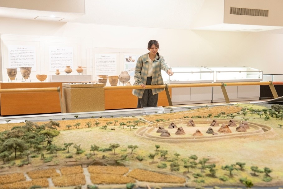 館内中央には、当時の風景を再現した大きなジオラマも!弥生時代の自然環境や人々の生活を想像しながら見学してみてください。