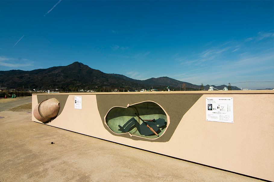 現在、公園内には当時の地形や植生が再現され、出土した銅剣や鏡、甕棺などの実物大レプリカが展示されています。